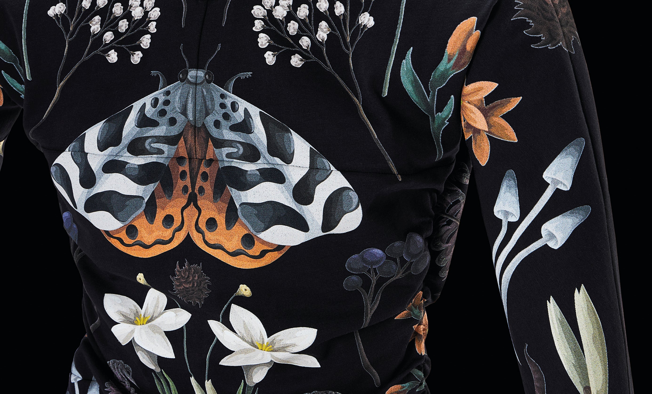 Made in Italy from 100% organic cotton and printed using waterless digital technology, each piece is produced on demand, eliminating overproduction and embracing a new, responsible vision of fashion.