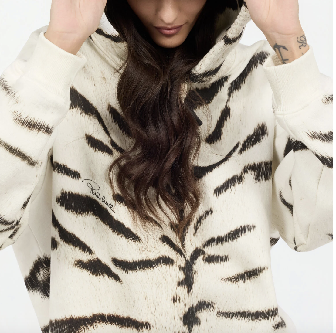 For the first time, Roberto Cavalli teams up with OGAT to launch a limited-edition capsule that blends bold luxury with conscious innovation. Featuring hoodies, t-shirts, and joggers printed with the iconic White Tigresse motif, the collection pays tribute to the brand’s sensual, feline spirit.